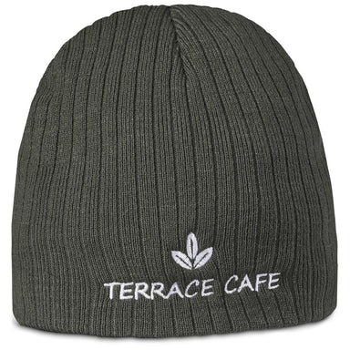 100% acrylic knit PU patch with Custom Brands logo on back panel