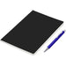 An economical notebook and pen set, especially suited for meetings, conferences and events. Packaging the notebook and pen in a pouch makes it easy to transport and to distribute these writing sets. This set consists of a black A5 notebook with a pen available in a variety of colours. The pouch has a stud button closure, and it’s made predominantly from recycled material.